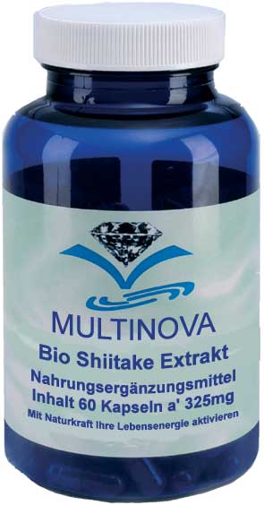 - Inhalt: 60/240/750 Kapseln à 250 mg Shiitake-Extrakt aus zertifiziertem Bio-Anbau, 75 mg vegetariergeeignete Zellulosekapsel