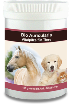 Als Faustregel für die Dosierung von Auricularia für Tiere gilt: ein größerer Hund oder ein Pferd benötigen die gleiche Menge wie ein erwachsener Mensch, das heißt 2-3 g am Tag.
